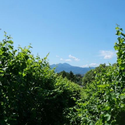 Heading north from Sapporo on the Hokkaido Expressway, there’s a vineyard on the right-hand slope just past the Naie–Sunagawa Interchange, with a view of Mt. Pinneshiri from the rows of vines.