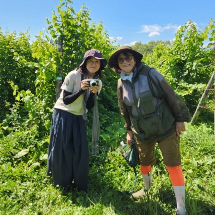 “Weeds and shoots grow so quickly that even if we tidy up, it’s a jungle again in no time—it’s embarrassing,” laughed Ms. Rumi Takahashi, mother of the winery’s representative, Ms. Rika Takahashi, who was also out working in the vines that day.