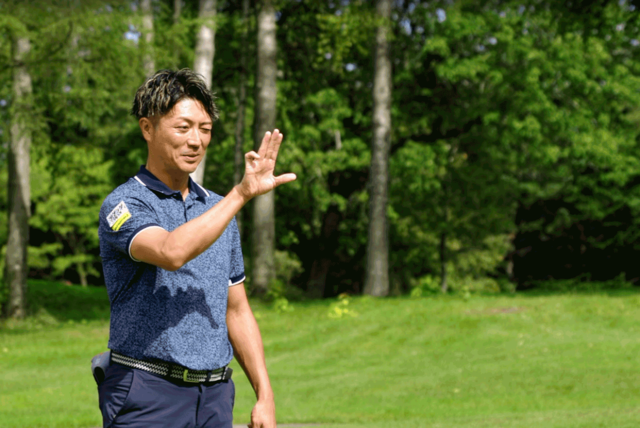 距離のあるロングホールでは、セカンドで3番ウッドを振り抜き、手応えのある弾道が青空に弧を描く。ピンの手前8mに止まり、イーグルパットは惜しくも入らなかったが、2オン2パットのバーディー。妻と目を合わせてガッツポーズを交わした瞬間、プロとしての喜びというより、ゴルフを純粋に楽しむ少年の心を取り戻せたように感じた。途中、大きな角を持つエゾシカが現れてフェアウェイを横切っていった。