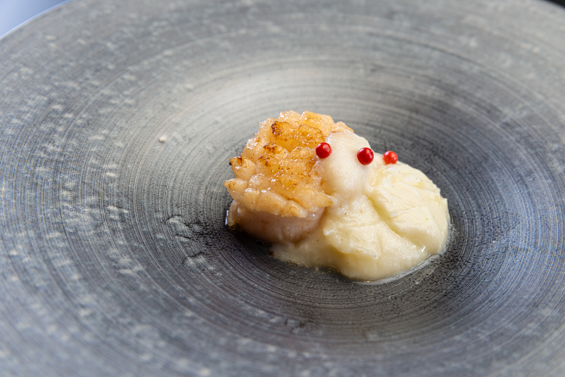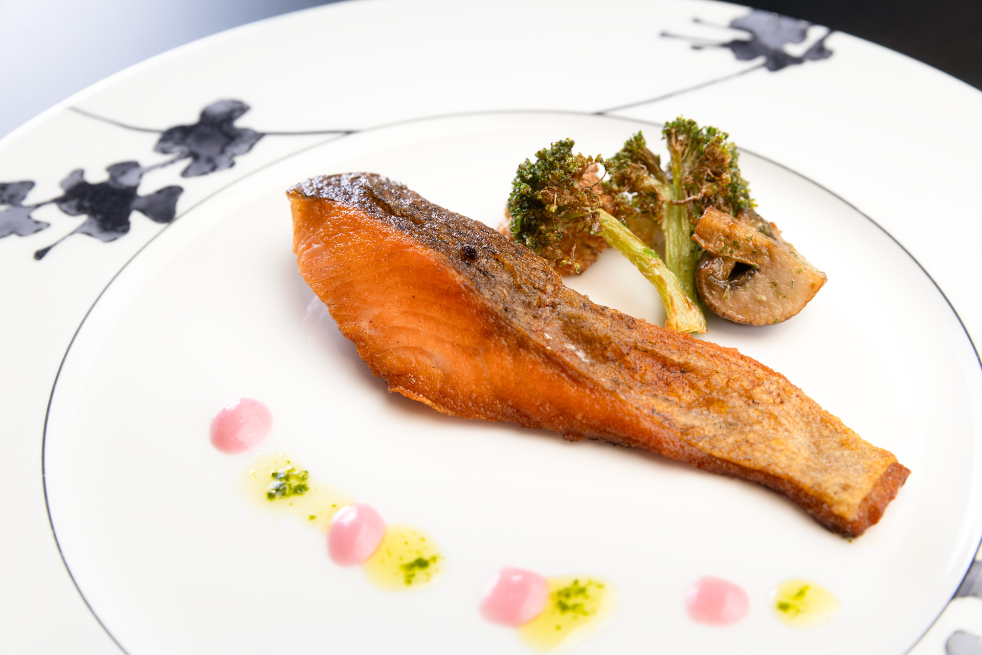 秋の冷たい水でぐっと身の引き締まった大雪サーモンを、絶妙な火加減でムニエルに。ビーツとバジルの鮮やかな二色のソースで、お楽しみください。